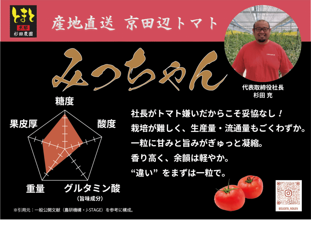 果肉内のグルタミン酸が豊富で、ひと噛みでジュッと広がる“だし感”。砂糖的な甘さではなく、コクのある甘み。