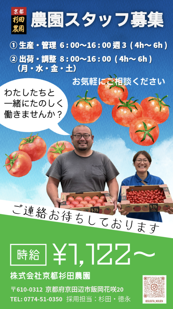 \ 京都杉田農園では、一緒に働く仲間を募集しています! /